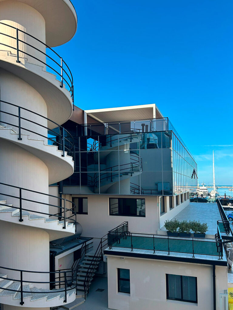 La ristrutturazione ha interessato il secondo piano della palazzina antistante il bacino portuale, ed è adibita ad eventi e sala mostra per gli allestimenti delle barche ed alcuni uffici dirigenziali.