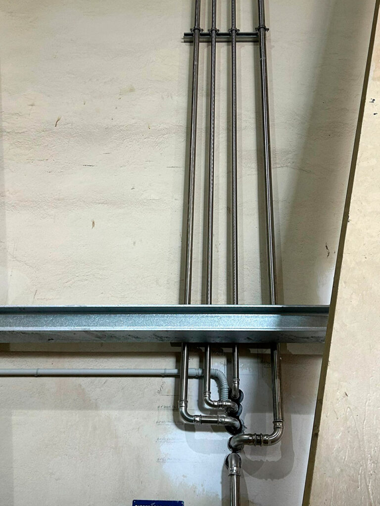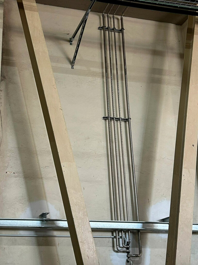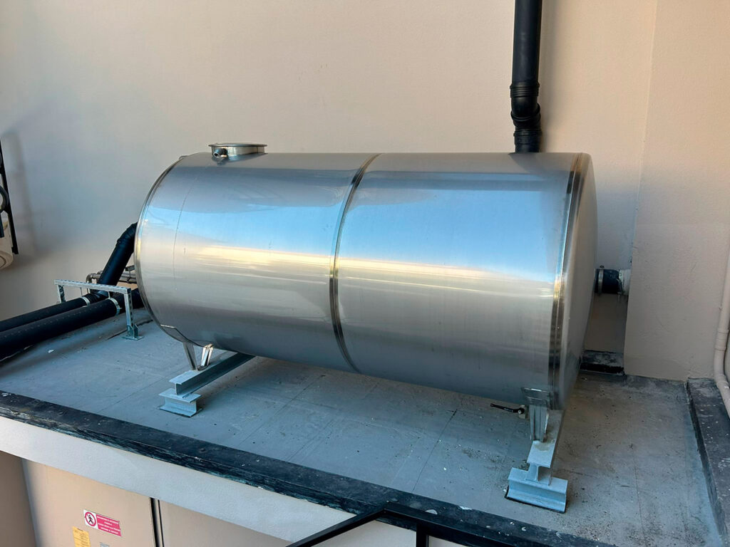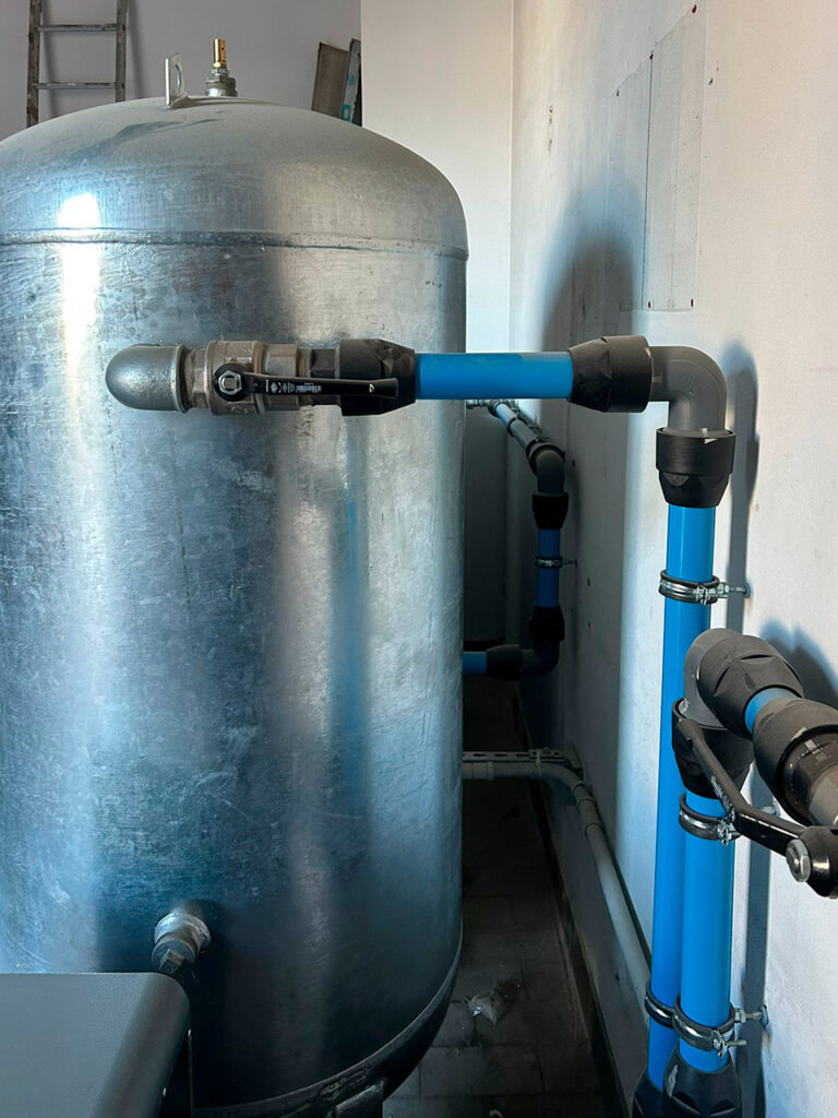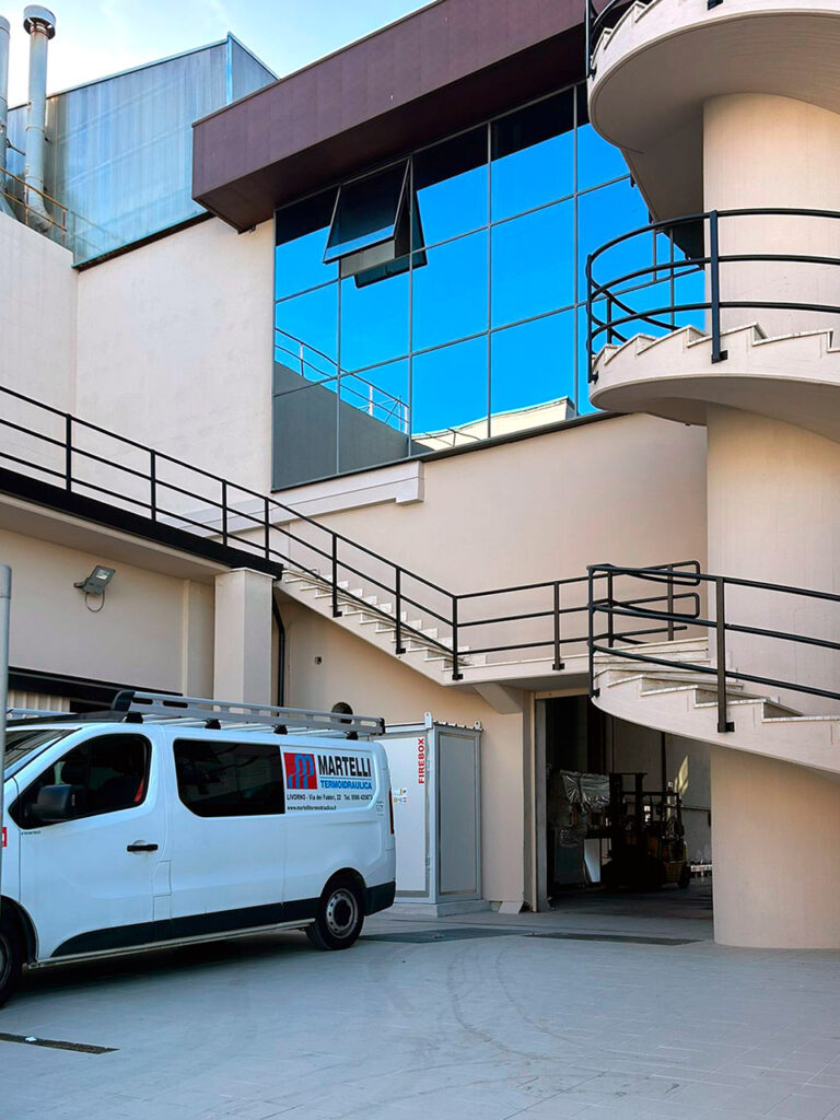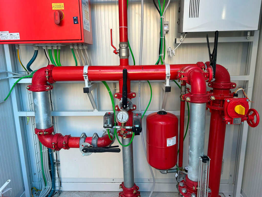 Una riserva interrata con gruppo di pressurizzazione per spegnimento incendi serve sia la parte produttiva della struttura sia la nuova area oggetto di ristrutturazione.
