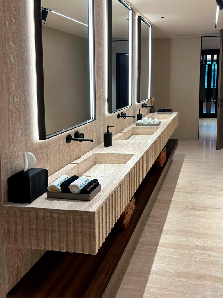 L’ambiente, di un design unico, ha richiesto una capillare attenzione nella progettazione dell’impianto di climatizzazione ad espansione diretta di tipo VRF. Le unità esterne , posizionate in banchina sono state selezionate per avere trattamenti epossidici su tutti gli scambiatori e le componenti elettriche ed elettroniche.