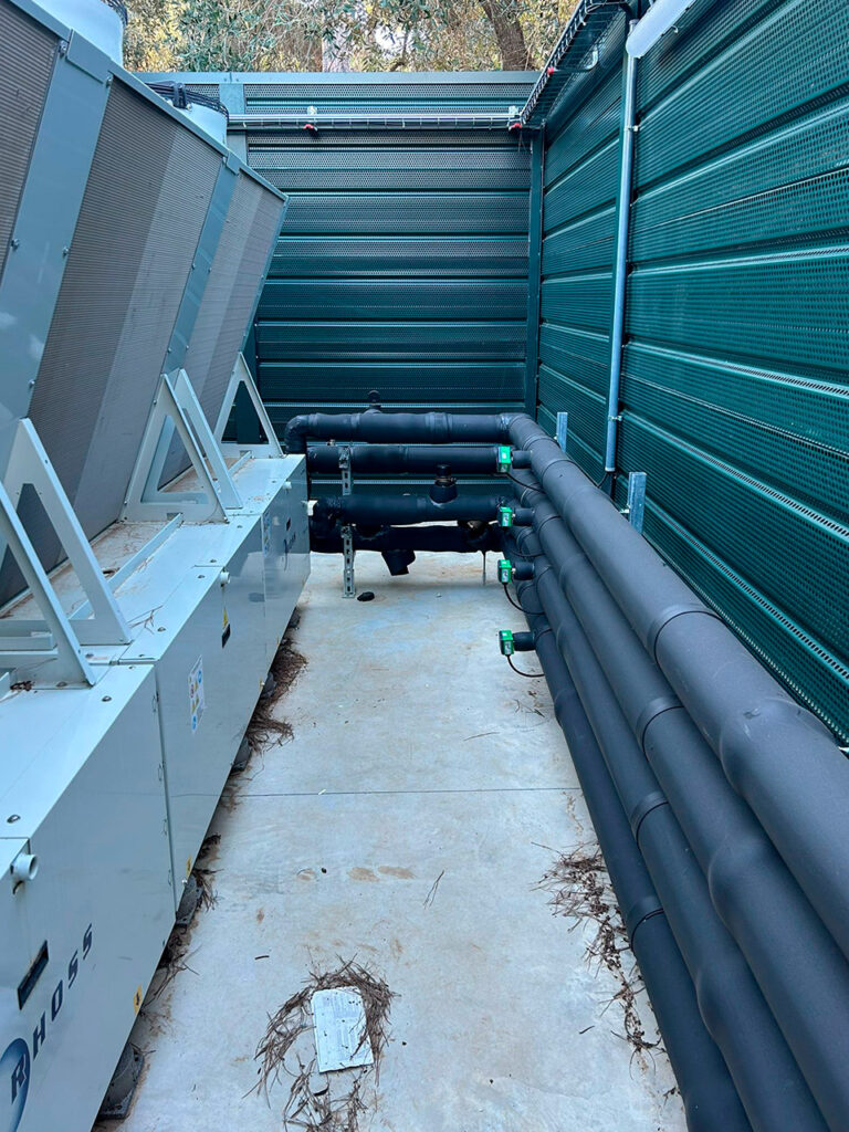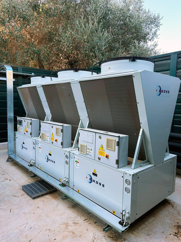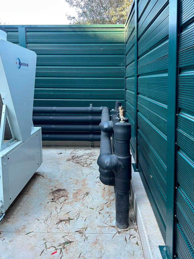 In entrambe le strutture è prevista una centrale di produzione appartata rispetto alla villa centrale da cui dipartono tutti i fluidi sanitari per la climatizzazione estiva ed invernale per ridurre al minimo qualsiasi interferenza di rumorosità da parte dei generatori, caldaie e pompe di calore.