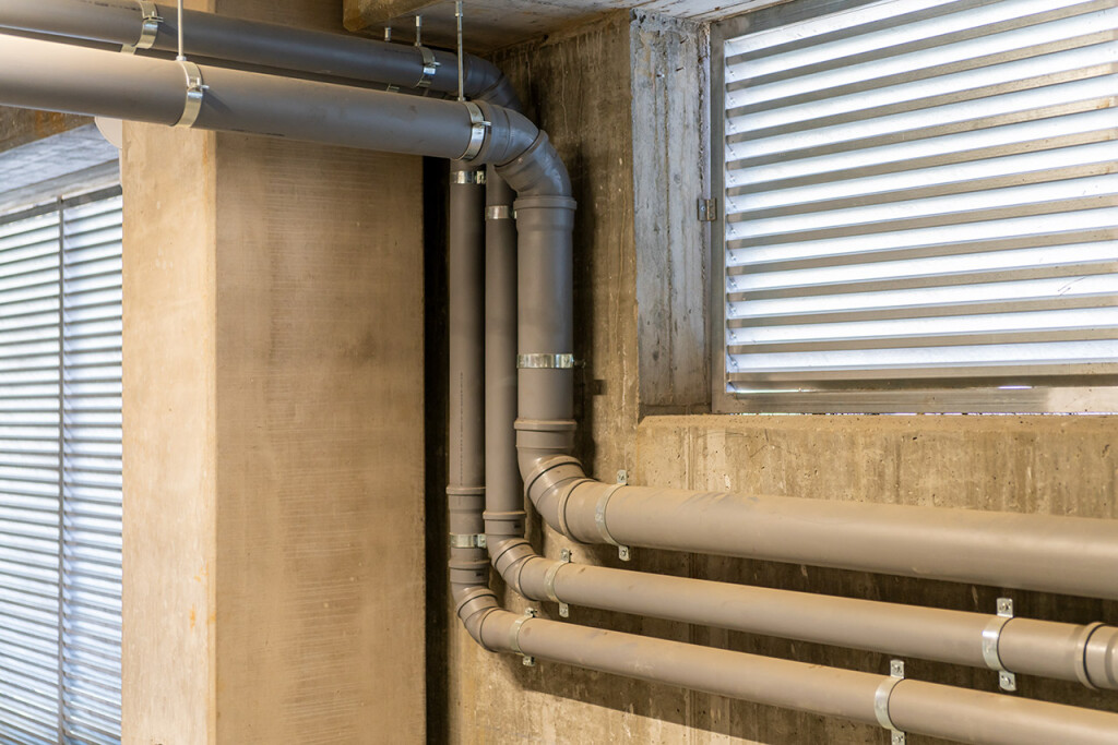 Il ricambio d’aria in tutta la struttura è garantito da recuperatori di calore di tipo statico installati nei controsoffitti. La diffusione in ambiente avviene con tubazioni a vista microforate e con i classici diffusori elicoidali.